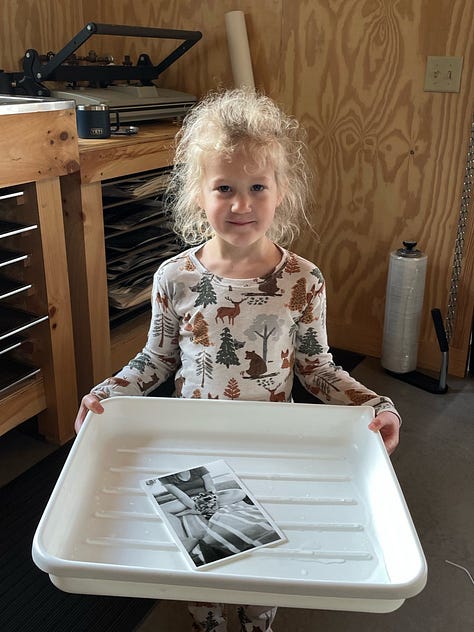 Jesse’s work that I’ve been printing is inextricably mixed with his personal life, by a combination of design and fate. Jesse used to live with his growing family in an airstream, traveling the country to run Collective Quarterly, photographing other people’s stories. After finally settling in Ohio’s Amish country a number of years ago, he shifted to begin photographing the story of his own life, digging deep to make work of his family, and the land and animals around him, built on a framework of faith and mythology.